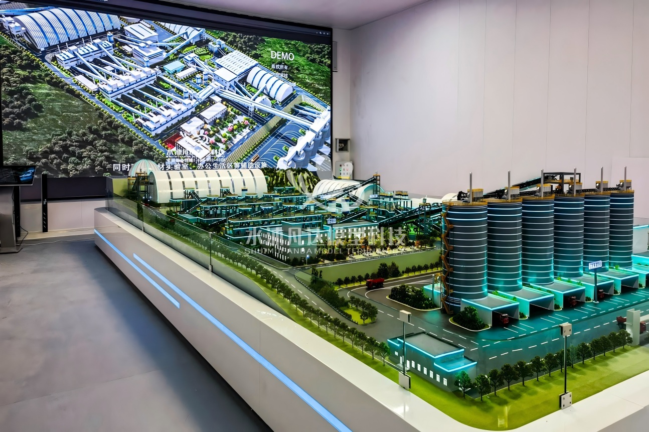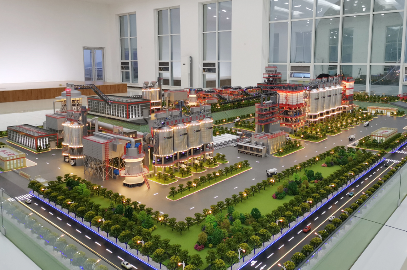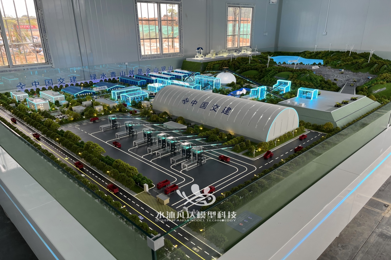 制作底盘、景观、道路、设备、建筑等,设置灯光电路等展示功能